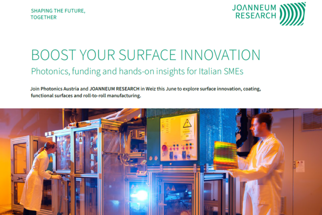 „Boost your Surface Innovation“ ist der Fokus des am 12. Juni 2026 stattfindenden Democenters in Zuge des Projekts PhotonHub Europe. Besuchen Sie Photonics Austria und JOANNEUM RESEARCH im Juni…