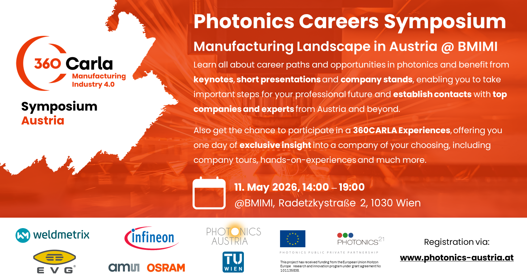 Am 11. Mai organisieren wir als Photonics Austria im Rahmen des Internationalen Tag des Lichts 2026 ein 360CARLA Symposium mit Schwerpunkt auf "Manufacturing" bei dem sich alles um Berufschancen und…