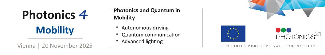 Phorwards21_Photonics4Mobility_Austria_20251125 Photonics4Mobility brings leading photonics companies together with mobility end users to kick-off joint projects, consortia, and networks – supported by our partnership with Photonics21, AC Styria and the Austrian Economic Chamber. Why attend? Autonomous driving: See how lidar, imaging, and sensor fusion push perception beyond today’s limits – robust detection in adverse weather, low-latency edge…